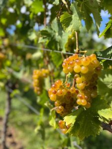 Am 2. September haben wir unseren Muskateller im Birkweiler Mandelberg gelesen – goldgelbe, sonnenverwöhnte Trauben, die auf dem Muschelkalkboden dieser besonderen Lage gewachsen sind. Jede Beere trägt die ganze Kraft des Sommers in sich, und genau diese möchten wir in unserem Muskateller LagenSaft bewahren.